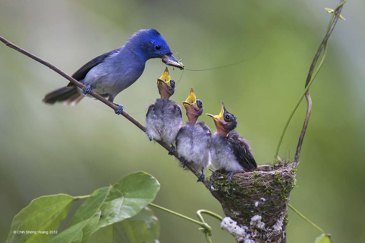 "Black-Naped Blue Flycatcher Feeding"