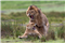 Lion Flushing Guinea Fowl |