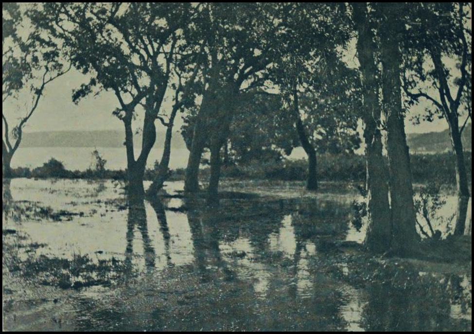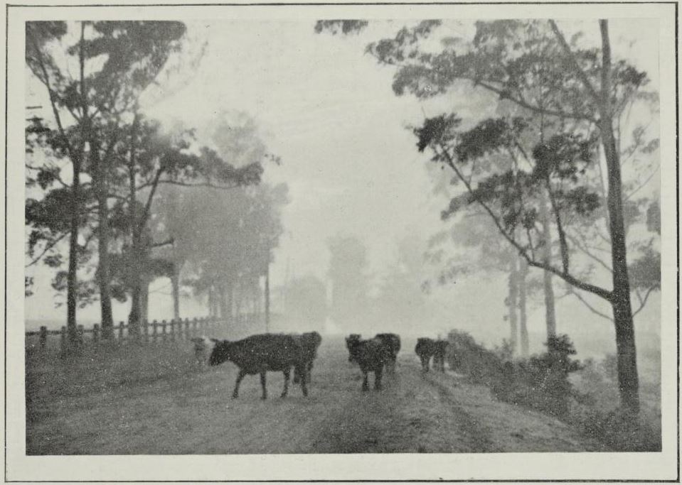 “Parramatta Park” by C.E. Wakeford, is an impressive composition with perfect balance, the rhythm of line and shape is pleasant; the tones good. The only fault one can find in it is a lack of definition in the foreground. Muzziness is the most common fault of the camera man and it is the quality to be avoided most.