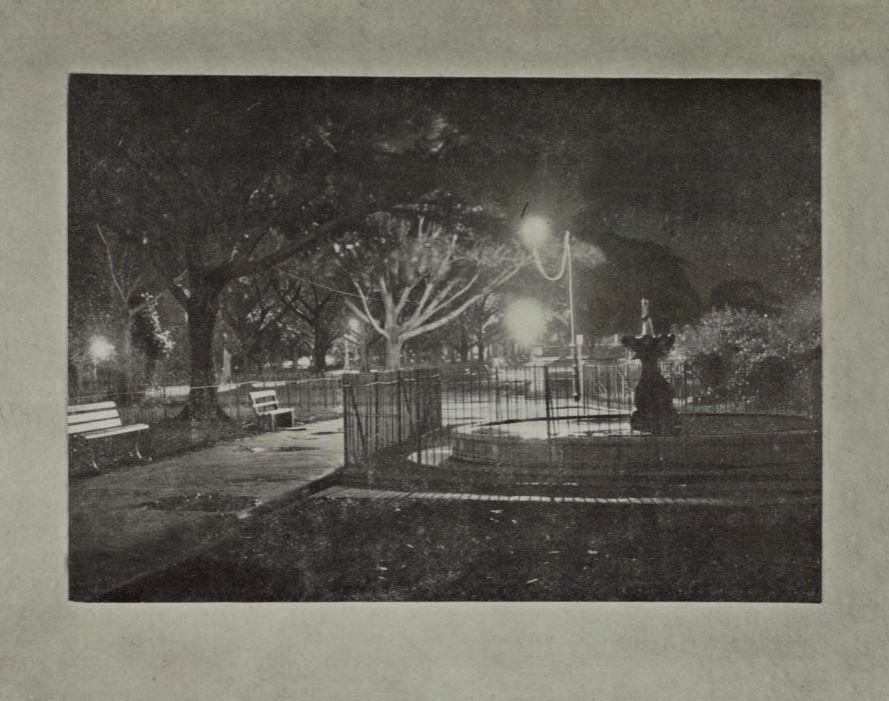 The statue, which was executed in Italy to a design modeled by Mr. Nelson Illingworth, is of pure white marble, and is an exceedingly fine piece of sculpture. The massive sandstone base and marble pedestal are the work of Messrs. Andrews Brothers, of Sydney, and form a perfect foil to the artistic delicacy of the figure. The photograph itself is of interest to the photographic world, being a very effective open-air flashlight. It is the work of Mr. A.J. Small, of the Photographic Society of New South Wales.