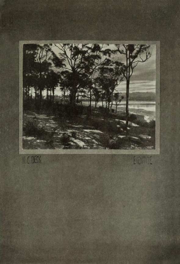So far as we know, with two exceptions, the whole of the exhibitors are amateurs; that is, except Messrs. Cazneaux and Appleby, they do not make their living by photography. There may be others, but if so, their names are not familiar to us.