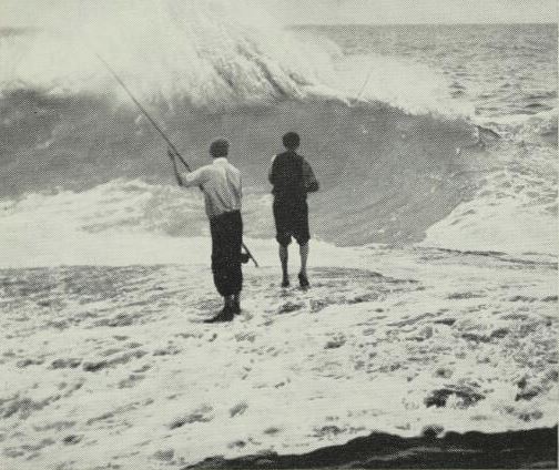 The first outdoor picture 'Caz' took in Sydney, it was just after he arrived. He had purchased a T.P. “Amber” camera and had gone to the Bondi cliffs, where he saw these fishermen threatened by the huge waves. With characteristic presence of mind he quickly captured the scene and shortly after, when "The Australasian" held a photographic competition, he sent in this picture and it won him £3, which, incidentally, paid for the new camera.