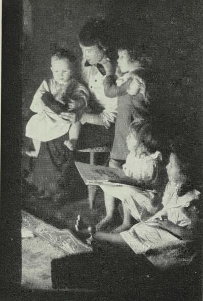 Apart from some overseas success, this picture was included in his entry which won the first prize of £100 in the Kodak “Happy Moments” competition in 1914. It was an early experiment in controlled artificial lighting, the 'fireplace' being a flash hidden behind an up-ended table.