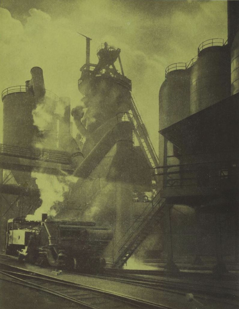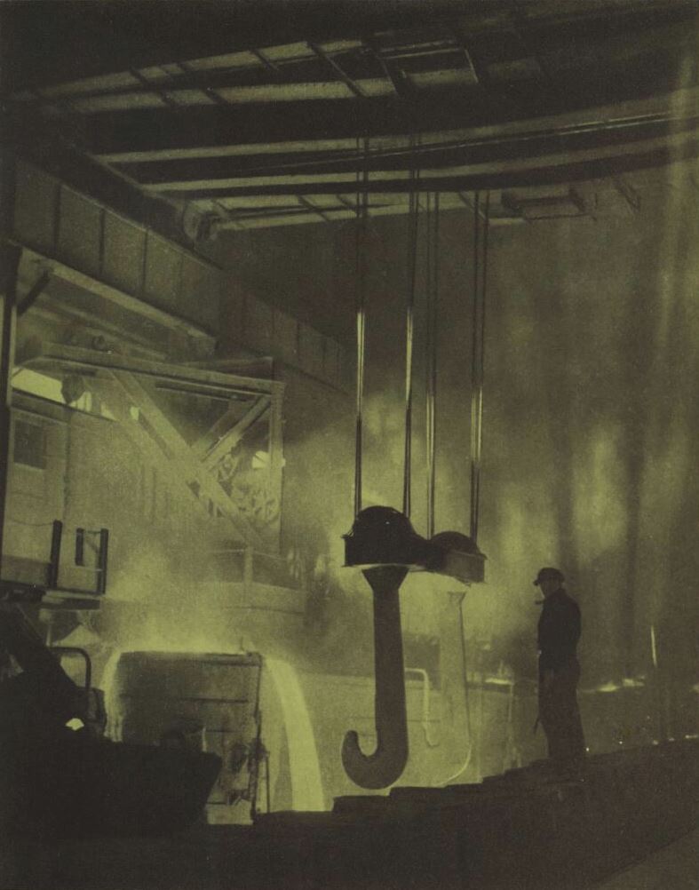 There followed "Art in Australia" books that were entirely illustrated by Caz. "The Koala Bear Books", "The Sydney Bridge Book", "The Canberra Book", "The Frensham Book" (100 pictures of life in a college for girls) and the special "Home Annuals" — with them, his continuing work in the "Art in Australia" quarterly. Caz compiled "The Red Cross Presentation Book", the album of "Sydney Harbour Pictures" as presented to the Prince of Wales, and "The Special Jubilee Book of B.H.P."; this latter job took many months and to complete it Caz traveled to Melbourne, Newcastle, Whyalla, Iron Knob and far out in the central desert. For this series of pictures the whole of the vast steel works at Newcastle were cleaned up from top to bottom — that was worthwhile, for those photographs introduced a new era of industrial photography. Then he did "The University of Sydney Appeal Book"; here he was allowed to roam at will and take the lectures and demonstrations, arranging groups of students and professors exactly as he wished.